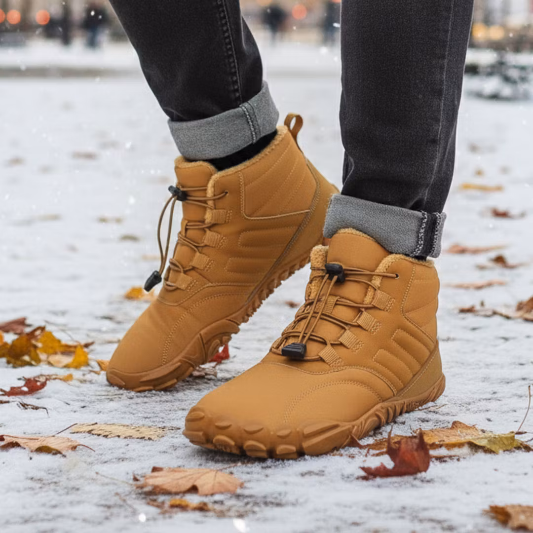 Barfotskoenes tynne og flate såle muliggjør en naturlig aktivering av fotens muskler og sener, uten å kompromisse med komfort og varme. Den tynne sålen gir optimal frihet og følelse, samtidig som det grepvennlige mønsteret på undersiden gir perfekt stabilitet på snø og is. Føttene dine vil ikke bare ha det bra, men også føle seg varme og komfortable selv på de kaldeste dagene!