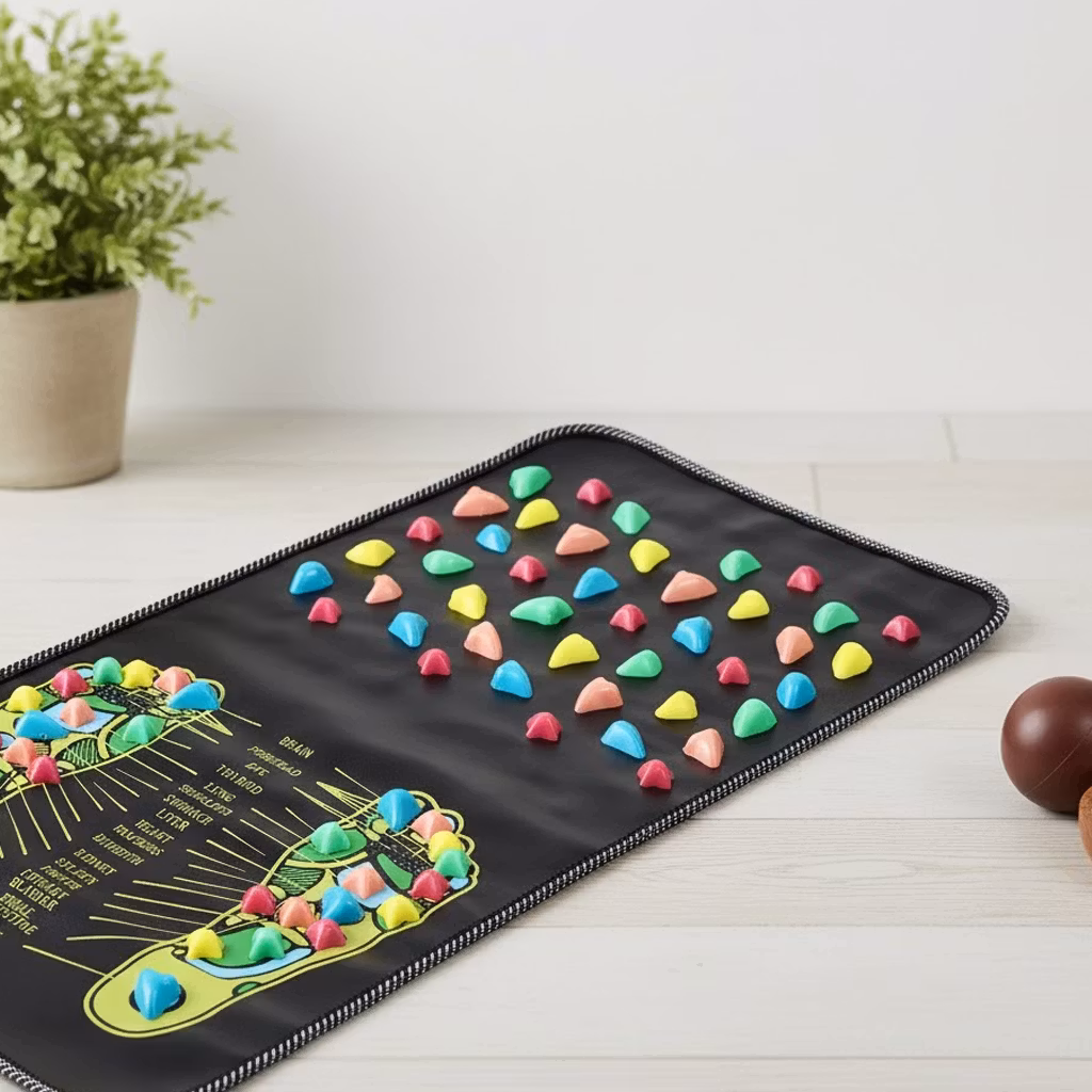 Vi bruker føttene våre hver dag, og overbelastning av føttene kan forårsake smerter, spenninger og trøtte føtter. Pass derfor på å gi føttene litt ekstra pleie med denne fotmassasjematten. Den fjerner spenninger i føttene, bidrar til at du slapper av i musklene og gir deg en behagelig og rolig følelse i kroppen.