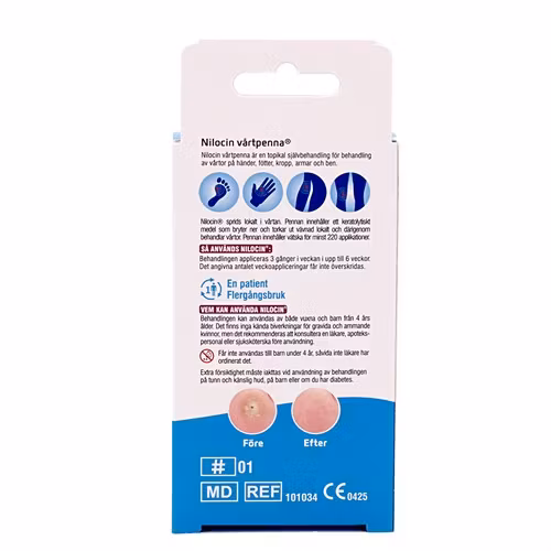 Pennen gjør det enkelt å påføre serumet – selv på vanskelig tilgjengelige områder. Den inneholder 3 ml væske, som rekker til opptil 220 påføringer. Behandlingen skal utføres tre ganger i uken i opptil seks uker, eller til vorten er borte. Kan brukes av voksne og barn over 4 år.
