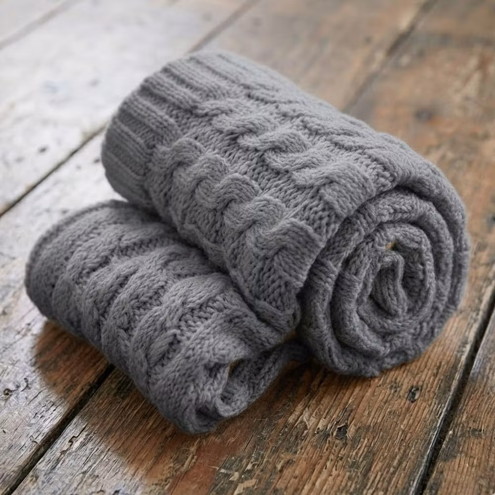 Disse stilige leggvarmere i grå passer alle størrelser for damer. Leggvarmerne er 45 cm lange og håndstrikkede. Når du bruker disse benvarmerne, trenger du ikke å tenke på at beina skal fryse – leggvarmerne gir varme til ben og ankler.