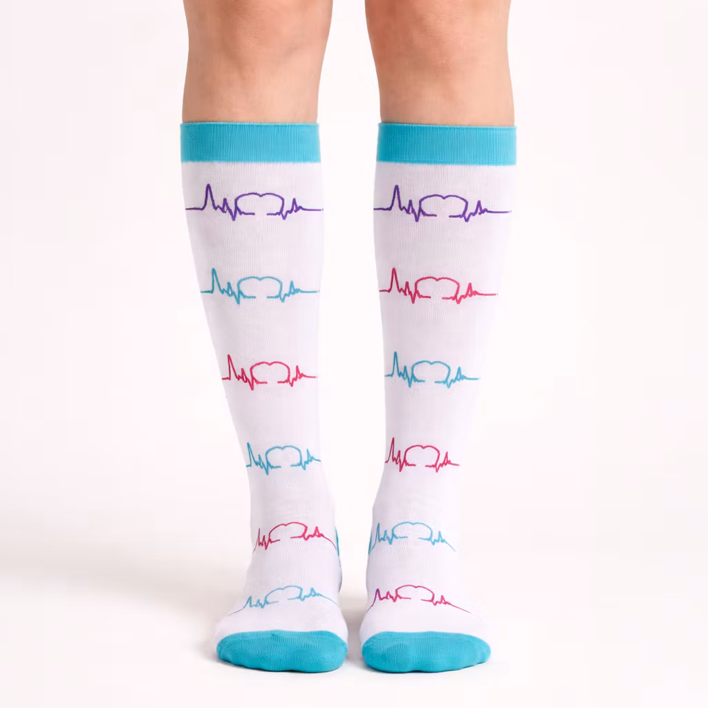 Et par nydelige støttesokker i et muntert helsevesen motiv som passer deg som jobber i helsevesenet. Lange dager der du står eller går mye på jobben kan være smertefullt for både føtter og ben. Når du bruker disse herlige støttesokkene, får føttene og beina en kjærkommen lettelse.