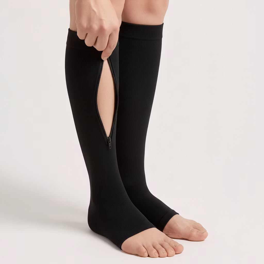 Støttestrømper med glidelås
