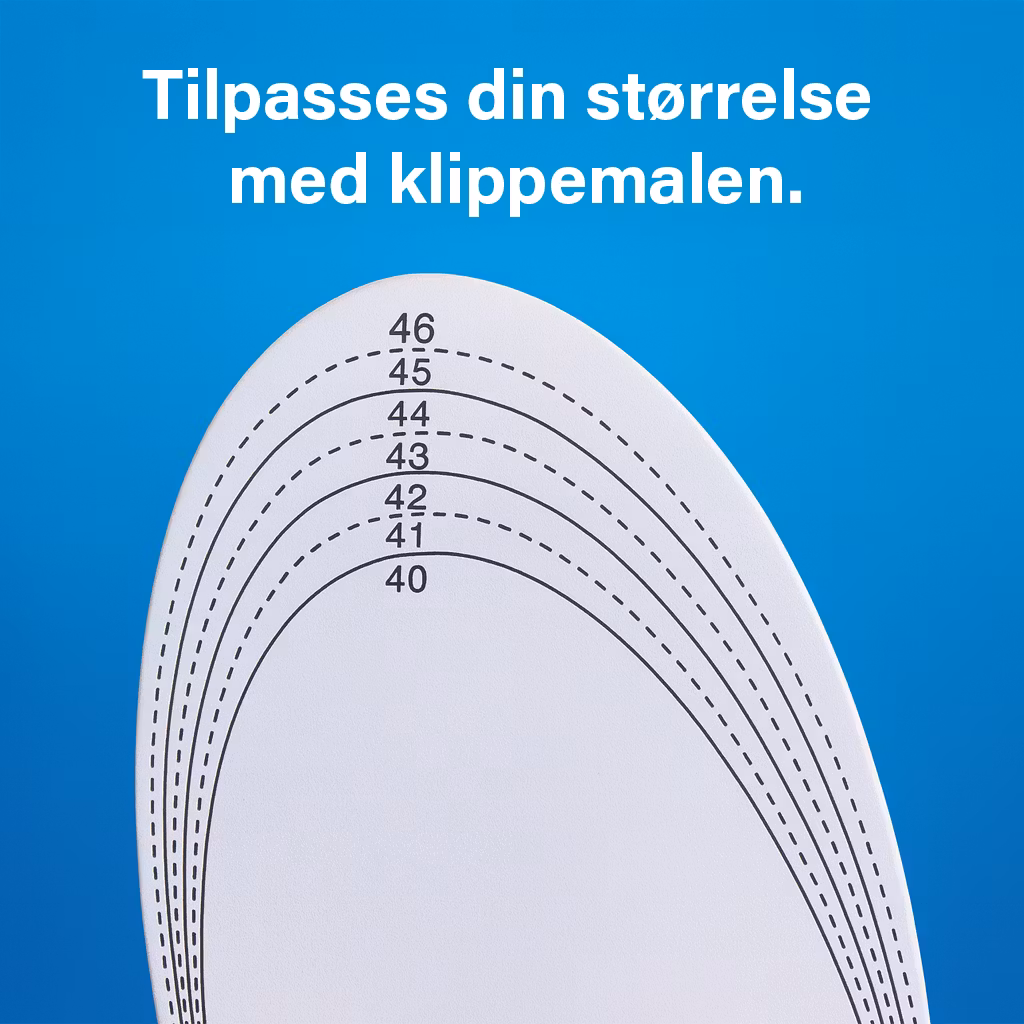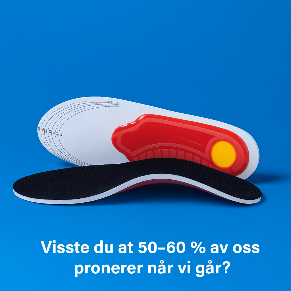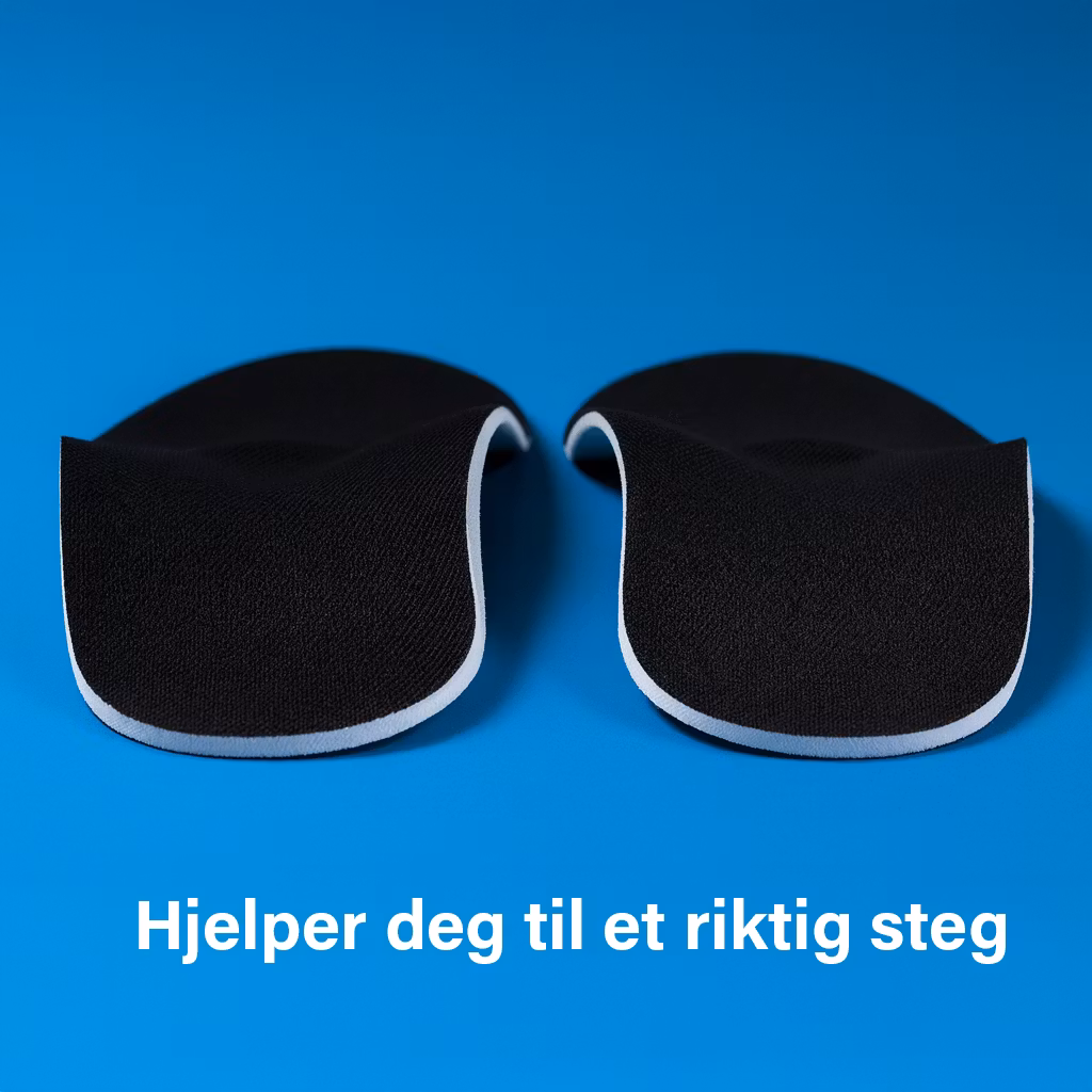 En par fjærlette skosåler som hemmer pronasjon i ankelen. Skoinnsatsen har også en behagelig langsgående pute som støtter Plantar faciitt og smerter i framfoten (metatarsalgia). Hælen på skosålen er utformet som en skål som gir demping og komfort for hælen.