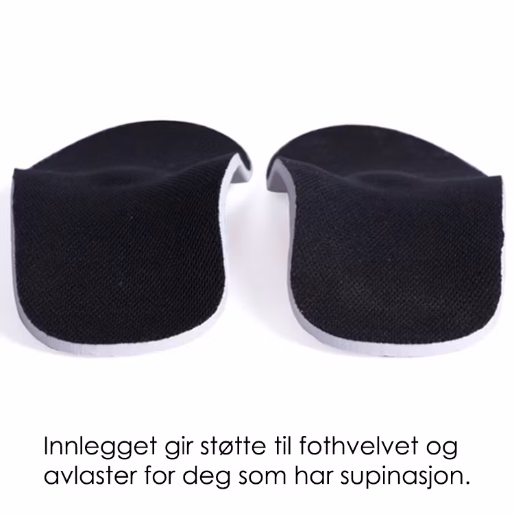 Supinasjon betyr at den største kroppsvekten blir plassert på yttersiden av foten når du går – disse skosålene mot supinasjon hjelper føttene å absorbere støt og gir en behagelig og skånsom demping for føttene.