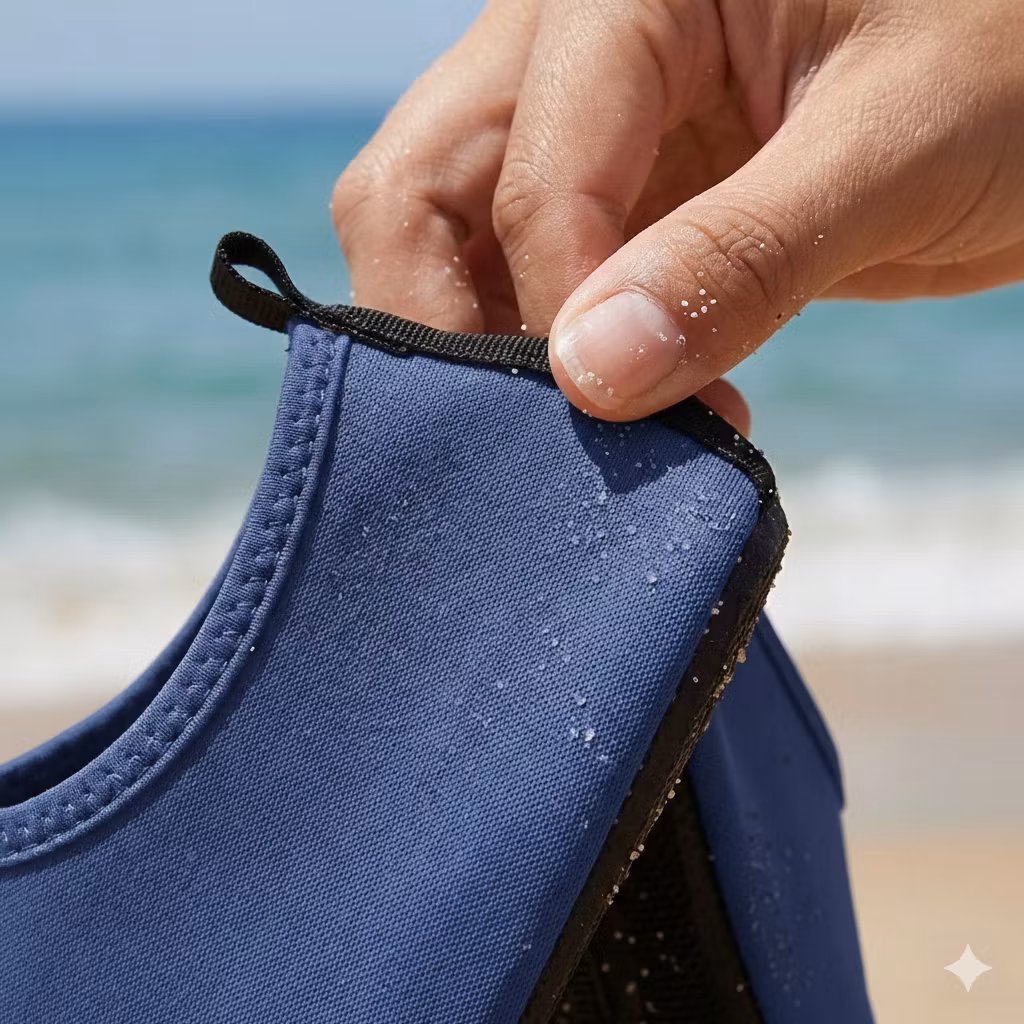 Ved å bruke disse badeskoene når du bader – reduserer du risikoen for å trampe på skarpe steiner, spille skjell eller knuste glass skår når du bader. Du trenger heller ikke å brenne fotsålene på den varme sanden, som hovedsakelig er rundt Middelhavet, når det er høysesong. Badeskoene lar deg gå rett i vannet og nyte uten å bekymre deg.
