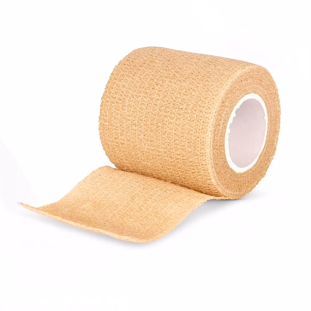 Bandaget sitter bekvämt och ger ett jämnt tryck runt fotleden. Det självhäftande materialet gör att det fäster i sig självt, inte huden – vilket gör det både skonsamt och enkelt att ta bort.