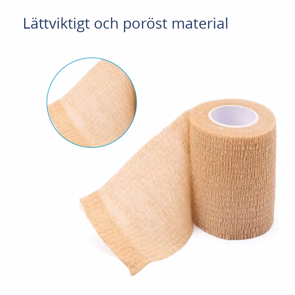 Bandaget är idealiskt vid lättare stukningar, svullnader eller vid behov av extra stöd i vardagen. Eftersom det inte behöver spännen eller klämmor är det både smidigt och snabbt att linda – oavsett om du är hemma, på jobbet eller ute på språng.