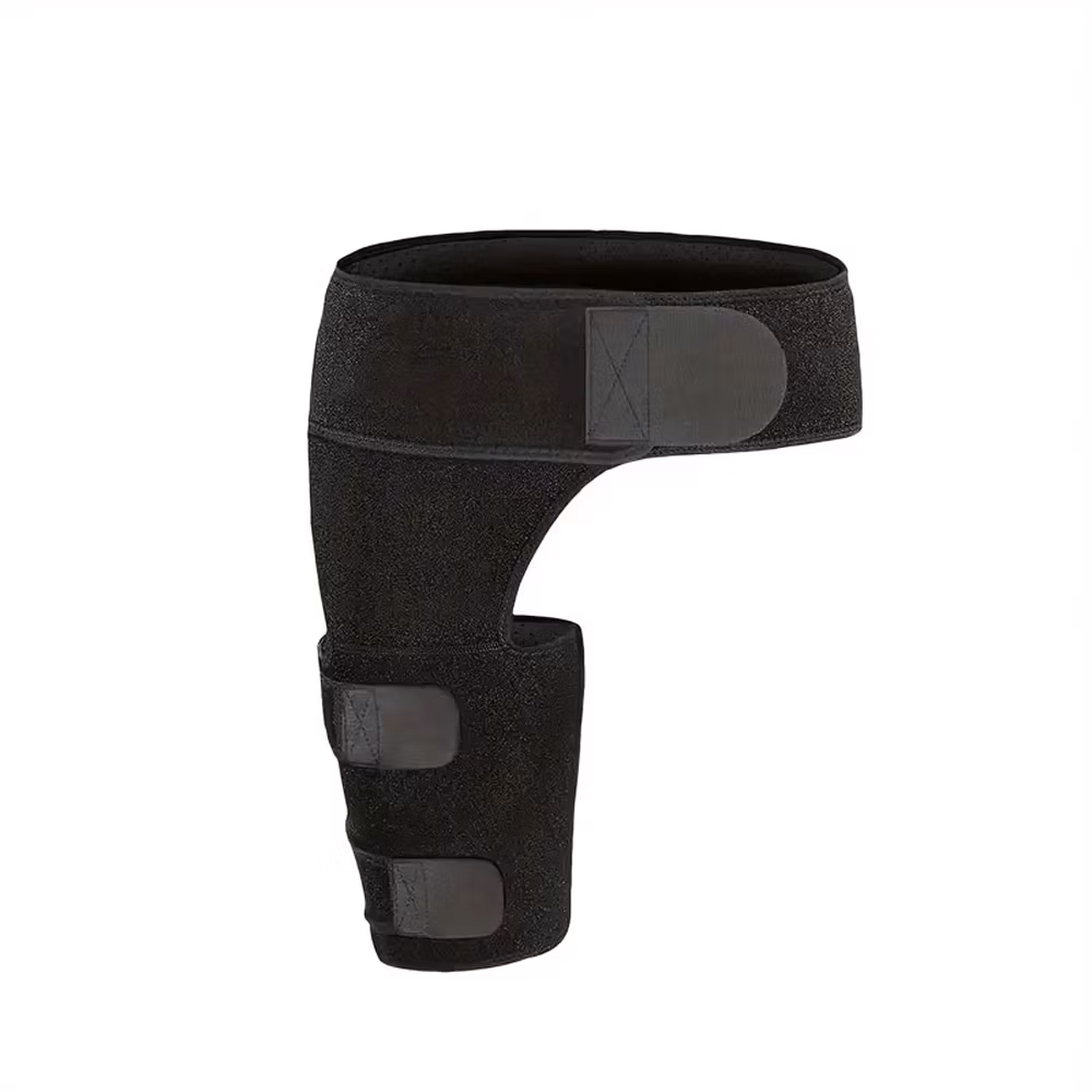 Stödet kombinerar kompression och stabilisering och hjälper till att lindra smärta från ljumskbesvär, höftsmärtor, ischias eller överbelastningsskador. Det är enkelt att ta på och kan justeras med starka kardborrefästen för att passa perfekt – oavsett om du bär det på höger eller vänster sida.