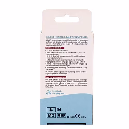 Nilocin neglesopp-penn gjør det enkelt å påføre riktig mengde produkt direkte på den angrepne neglen. Pennen inneholder 3 ml serum – nok til opptil 220 påføringer. Den er utviklet både for behandling og forebygging av neglesopp, og passer perfekt både ved akutte og tilbakevendende problemer. Resultatene er synlige allerede etter noen ukers bruk.